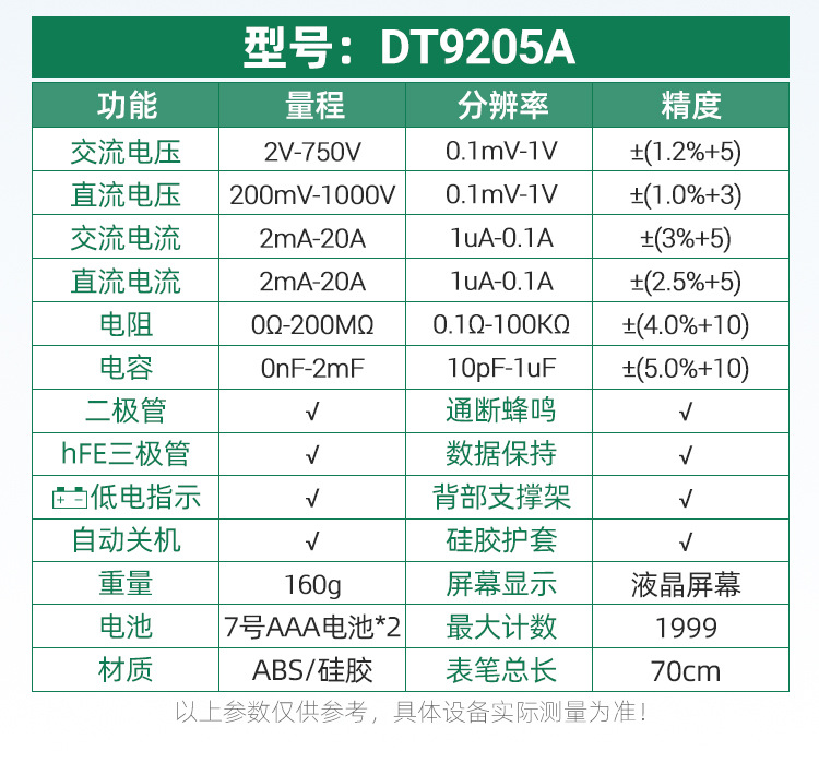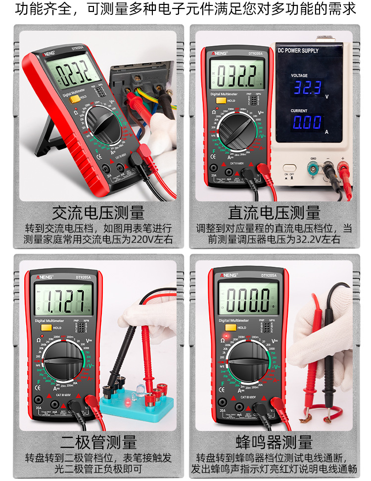 智能DT9205A万用表高精度数字万用表