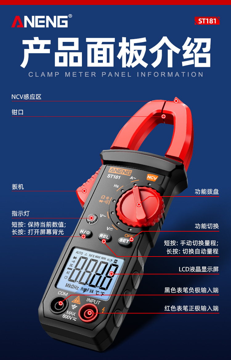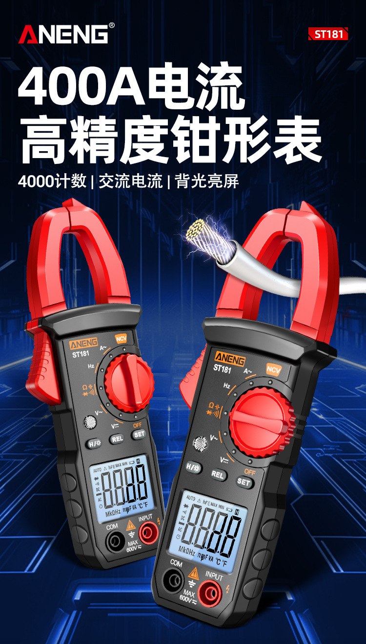 智能数字钳形表 高精度万用表400A交直流钳形电流表